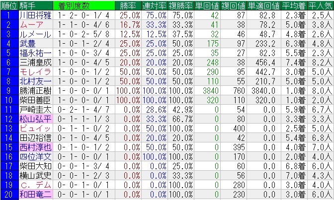 川田注意だが、騎乗馬いないか?ルメールはイマイチ?三浦とか勝浦とか善臣のオジキとか意外と言っては失礼だがそんな騎手が勝ってるレース。