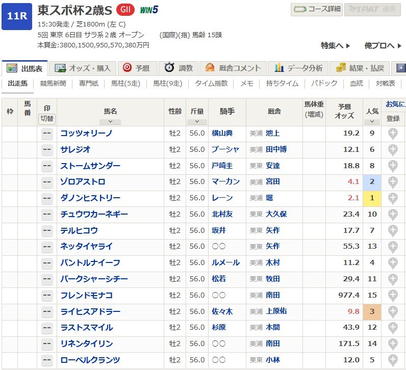 ■東スポ杯2歳S2025予想オッズ