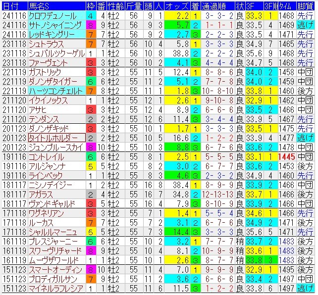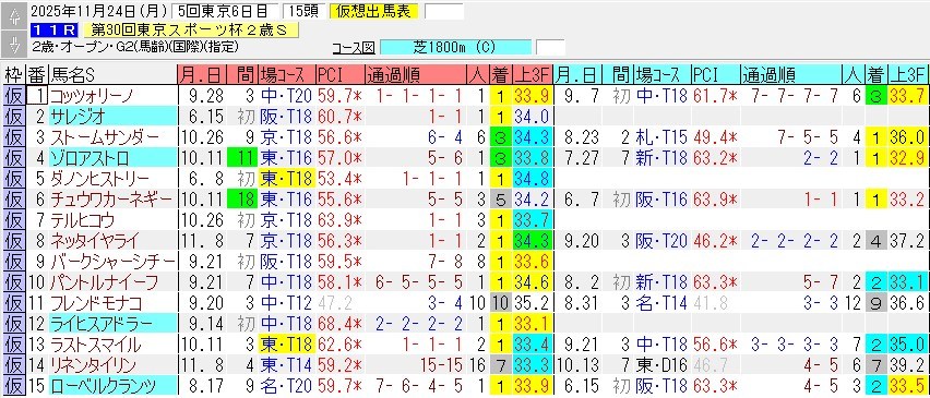 今回前走オープン以上で連対している馬はおらず・・・例年よりややレベルが低いかもしれん。