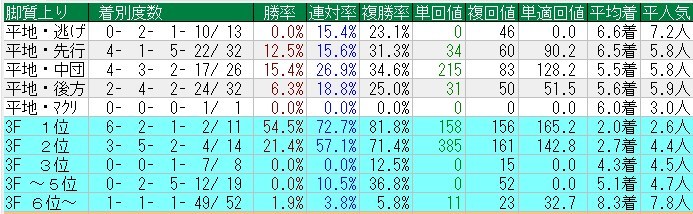 前走で逃げて速い上がりをマークしている馬は評価が難しいねえ。